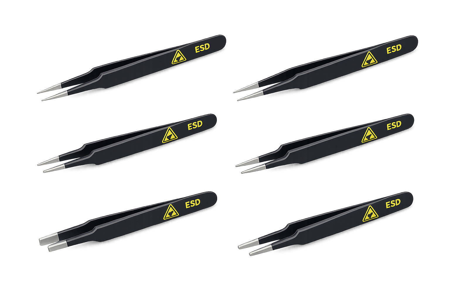ESD metal tweezers are precision hand tools designed for safely handling small and sensitive electronic components without causing electrostatic discharge (ESD) damage. They are made from conductive or ESD-safe materials that help dissipate static electricity, protecting delicate parts during assembly, inspection, and repair processes. ESD metal tweezers offer high accuracy, strong grip, and durability, making them ideal for fine-pitch components and detailed electronic work. They are widely used in electronics manufacturing, PCB assembly, laboratories, clean rooms, and service centers, contributing to precise handling, component safety, and reliable ESD protection.