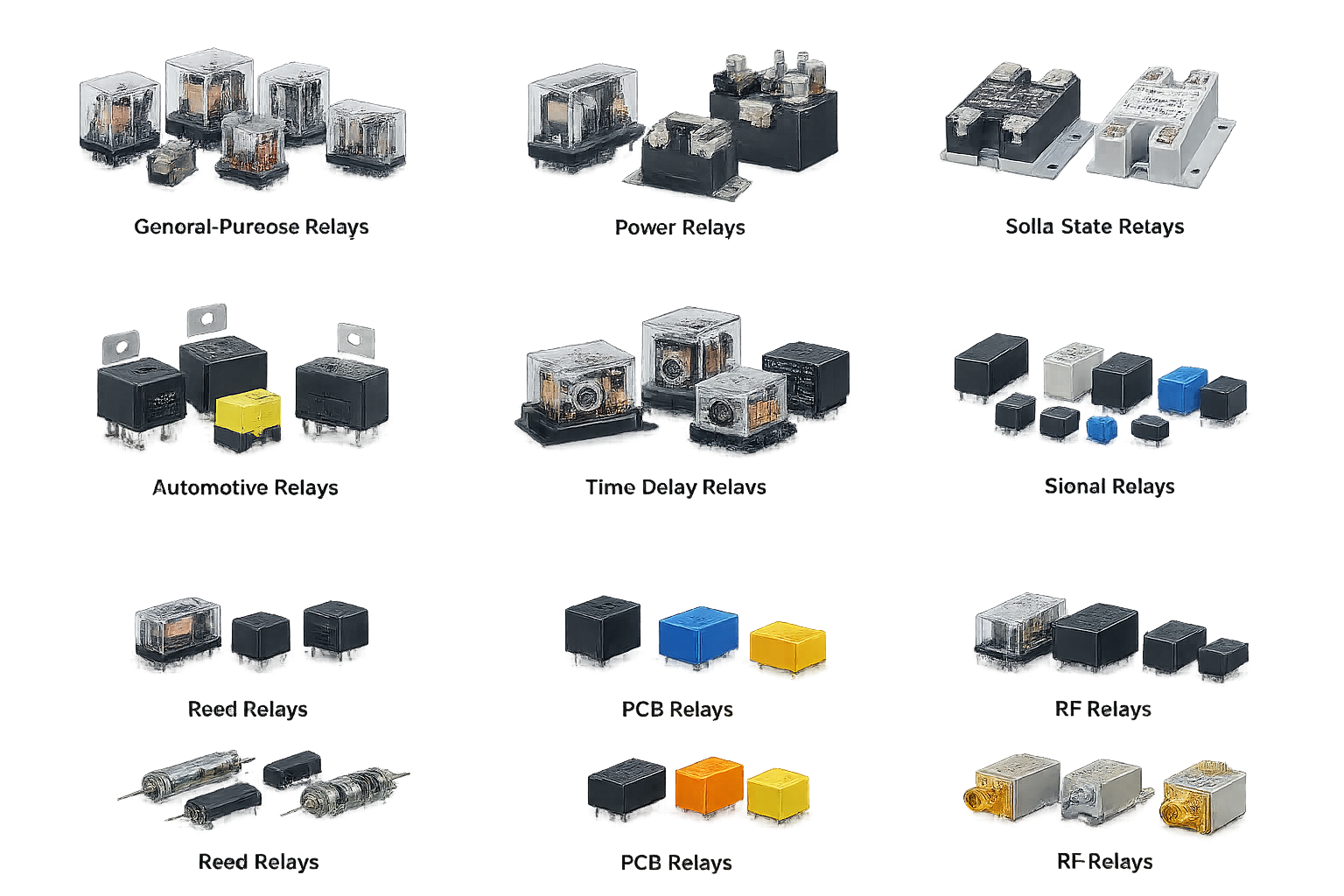 Relays are electromechanical or solid-state switching devices used to control high-power or high-voltage circuits using low-power control signals. They allow electrical isolation between control and load circuits, ensuring safe and reliable operation. Relays are commonly used to switch loads such as motors, lamps, heaters, and power lines in automation and control systems. Available in various types such as electromagnetic relays, solid-state relays, reed relays, and time-delay relays, they come with different contact configurations, coil voltages, and switching capacities. Relays are widely used in industrial automation, automotive systems, power equipment, consumer electronics, and protection circuits, contributing to system safety, flexibility, and dependable performance.