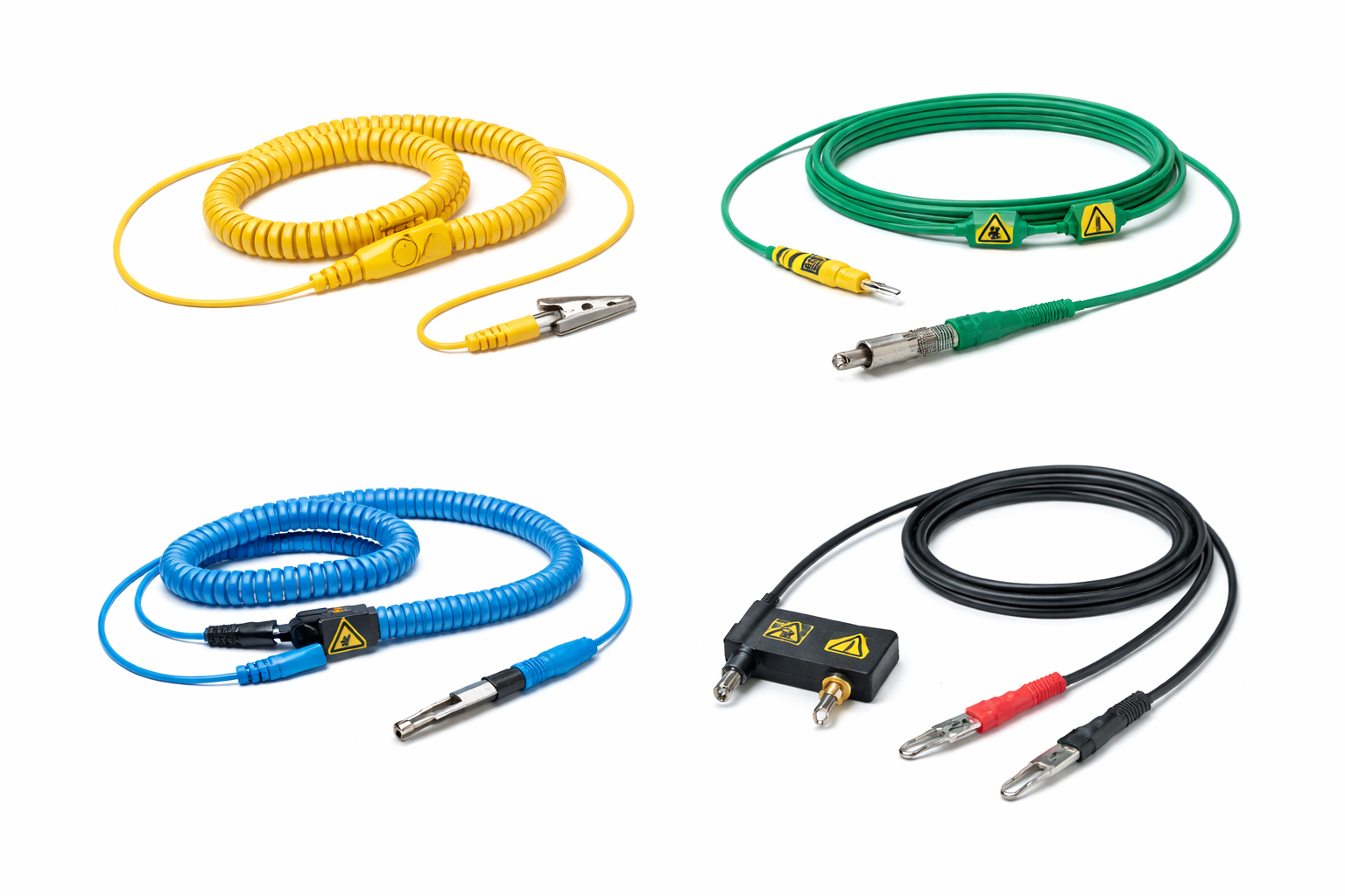 Ground cords are essential ESD safety accessories used to provide a secure and reliable path to ground for dissipating static electricity. They are commonly used with anti-static wrist bands, ESD mats, and other ESD protective equipment to safely transfer electrostatic charges away from personnel and work surfaces. Ground cords help prevent electrostatic discharge (ESD) damage to sensitive electronic components by ensuring proper grounding. Typically made with durable insulated wires, snap connectors, and built-in safety resistors, they are designed to meet ESD protection standards. Ground cords are widely used in electronics manufacturing units, clean rooms, laboratories, and repair facilities, contributing to safe handling, effective ESD control, and improved product reliability.