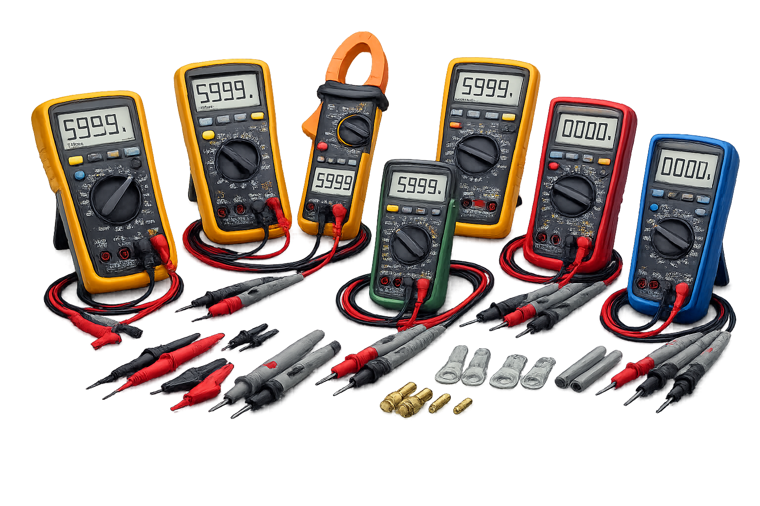 Multimeters are versatile electronic measuring instruments used to test and diagnose electrical and electronic circuits. They are designed to measure multiple parameters such as voltage, current, resistance, continuity, and, in many models, capacitance, frequency, and temperature. Multimeters play a vital role in troubleshooting, maintenance, and quality control by providing accurate and reliable readings. Available in analog and digital types, they come with different measurement ranges, accuracy levels, and safety ratings to suit various applications. Multimeters are widely used in electronics servicing, industrial maintenance, automotive diagnostics, laboratories, and educational institutions, contributing to safe operation, precise measurement, and efficient fault detection.